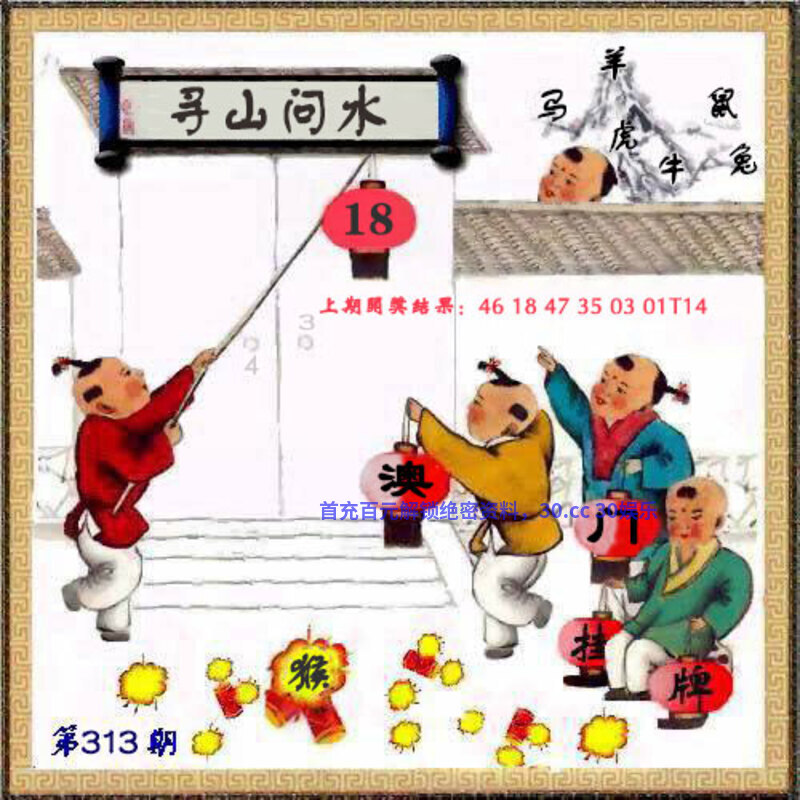 | 318期:跑狗玄机 一字記之日:【晨】 心大心小,難以抉擇,吾年五十加朝散 時來風送,自有對策!土风坐男使女立 玄机测字:【摸】 综合取肖:猴虎鼠龙蛇兔 |